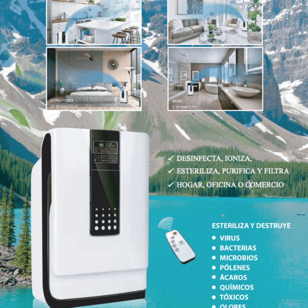 Equipo Profesional de Ozono con Sistema de Aniones para limpiar tanto el aire como el agua de tu hogar. Máquina de Ozono para aire y agua. Elimina olores sin necesidad de productos químicos. No requiere instalación, cuidado ni cambios de filtro.